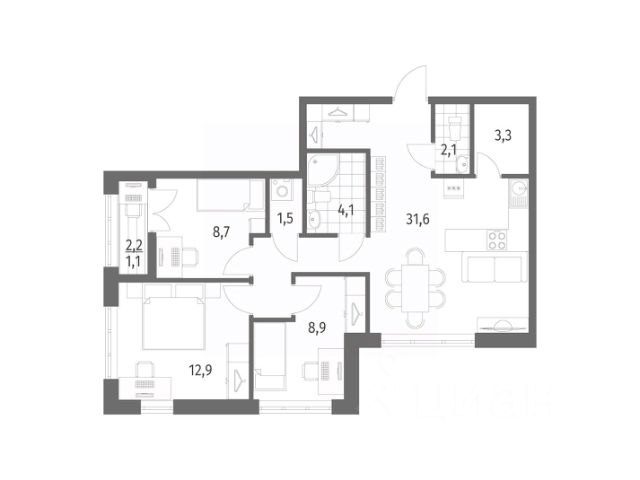 • ✓ В базе Циан 2 3-комнатных квартир на 13 этаже в сельском поселении Лаголовское Ломоносовского района