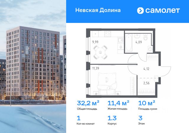 Строим кварталы для жизни с заботой о будущем. Предлагается 3-комнатная квартира комфорт-класса 82,5 кв.м в корпусе 1.3 на 13 этаже, в ЖК "Невская Долина" Квартира с чистовой отделкой. Доступность дополнительных опций уточняйте у застройщика. Приобрести квартиру возможно по специальным акциям от застройщика, с текущими условиями акций можно ознакомиться в блоке "Акций". Цена динамическая и может отличаться, уточняйте актуальность у застройщика. "Невская Долина" — зеленый холст для вашей жизни с уникальными палисадниками, садами и уютными уголками для отдыха. Всего в 5 минутах на машине — КАД, рядом — Большой Обуховский мост. До центра Петербурга — 35 минут на авто, до метро "Пролетарская" — 15 минут, до аэропорта Пулково — 30 минут. Комплекс находится на правом берегу Невы, рядом с Невским лесопарком, "МЕГА Парком" и парком развлечений. Скоро во дворе комплекса построят 4 детских сада и 2 школы. Рядом уже есть магазины "Дикси", "Магнит", пункты выдачи и аптеки. На первых этажах будут кафе и минимаркеты, откроется медицинский центр и физкультурно-оздоровительный комплекс. Архитектура домов сочетает в себе современность и функциональность — фасады украшены большими окнами, лоджиями, обычными и французскими балконами. В "Невской Долине" есть сады плодовых культур, игровые и спортивные зоны, 11 многоуровневых паркингов.