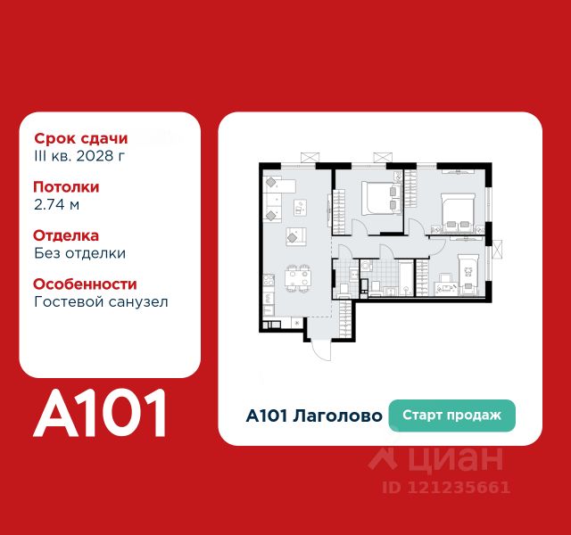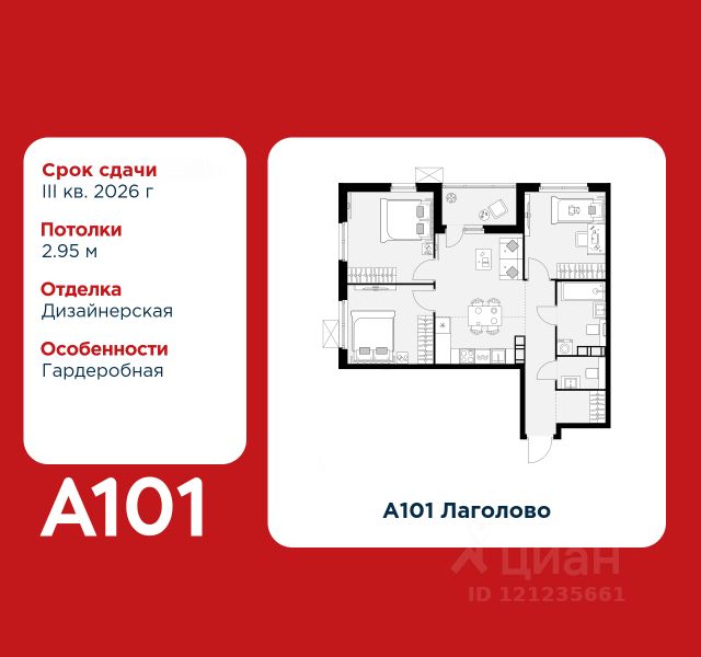 3-комнатная квартира площадью 67.10 в ЖК "А101 Лаголово" c лоджией на 13 этаже. Квартира с отделкой. Вид из окна на улицу. В квартире 2 санузла. Высота потолков 2.95 м. Особенность планировки - гардеробная. Предложения от застройщика на январь 2026: - Гибкая рассрочка 20 000 руб/мес. и первым взносом 10%. ОТДЕЛКА Для квартир с чистовой отделкой предлагается три варианта дизайна: Классика, Карелия светлая и Карелия темная. Варианты всех дизайнерских решений представлены на фотографиях. Подробности можно уточнить у менеджера. На все отделочные работы от застройщика предоставляется гарантия. ОСОБЕННОСТИ ПЛАНИРОВКИ Места для хранения находятся в прихожей и жилой зоне квартиры, дополнительно можно получить доступ к кладовым на подземном уровне (площадь - 2-8 кв. м). ПАРАДНАЯ В каждой парадной предусмотрены места для хранения велосипедов и колясок, гостевой санузел, лапамойка (место для мытья домашних животных или колес велосипедов) и удобная зона ожидания для гостей. ДВОРЫ И ОКРУЖЕНИЕ Просторные дворы свободны от машин и закрыты от посторонних. Большую часть комплекса займут благоустроенные зелёные зоны, теневые сады и городские общественные пространства с развитой тротуарной сетью и велодорожками. Каждый дом оборудован системами видеонаблюдения и контроля доступа. "А101 Лаголово" - современный город у подножия знаменитых Дудерговских высот, в объятиях чистейших озёр и зелёных живописных массивов, наполненный всем необходимым для счастливой жизни. ИНФРАСТРУКТУРА. Мы занимаемся комплексным освоением территории. Наш приоритет - доступность всех сервисов для счастливой жизни. 1. Лаголово-город 15-ти минутной доступности. Вся необходимая инфраструктура: магазины, салоны красоты, образовательные учреждения, медицинские центры находятся в 15-ти минутах пешей прогулки от любой точки жилого комплекса. Это позволяет не тратить время на долгие перемещения. 2. Представьте идеальный город, где ребенок может спокойно играть, а пожилой человек наслаждаться заслуженным отдыхом. Жилая среда нашего комплекса может комфортно использоваться как 8-летним ребенком, так и 80-летним пожилым человеком. Дома, улицы, общественные пространства, тротуары спроектированы с заботой о людях разных возрастов. 3. Мы активно развиваем авторскую образовательную экосистему "Лёрнити". Она включает строительство 8 современных детских садов (2000 мест) и 3 школ (2945 учащихся). Мы учим родителей гармонично общаться с детьми, помогаем малышам подготовиться к школе, а подросткам - выбрать будущую профессию и развить таланты. Не хватает средств на покупку кладового помещения? Оформите ипотеку на квартиру и добавьте к ней часть стоимости кладовой. ЗАСТРОЙЩИК ГК "А101" - крупный инвестиционно-строительный холдинг, занимает 6-е место по объему строительства в России (по данным "Единого ресурса застройщиков" на 2023 год). НКР присвоило ГК "А101" кредитный рейтинг A+.ru, подтверждая его надежность и финансовую устойчивость для завершения строительства ЖК.