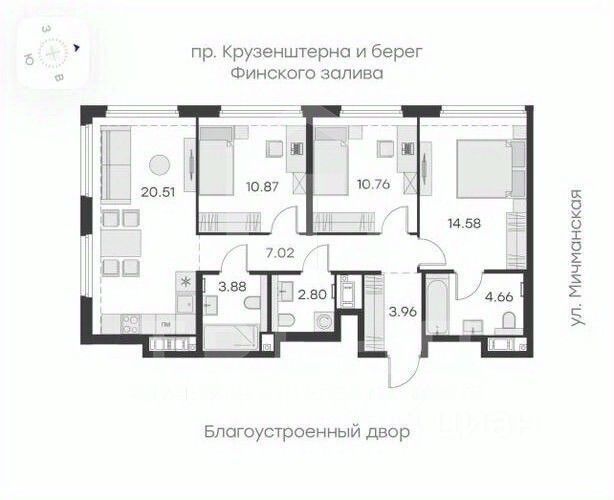 Цена действует при 100% оплате и на определенные ипотечные программы. Подробности — в отделе продаж по телефону. Жилой комплекс "Морская набережная" это проект масштабной застройки бизнес-класса, который реализуется в престижной локации Санкт-Петербурга на Васильевском острове. Новостройка расположена на 1-й и 2-й линиях Финского залива, что обеспечивает жителям возможность наслаждаться эффектными видами из окон квартир. В домах, расположенных на 1-й линии, представлены видовые квартиры с панорамными окнами, выходящими на воды Финского залива. За корпусами на 2-й линии высажен хвойный лес, который будет круглогодично радовать жителей. Масштабный проект, разделенный на два квартала (СиВью и Бульвар), состоит из 27-ми монолитно-кирпичных корпусов высотой от 13 до 28 этажей. Стильная современная архитектура ЖК с плавными линиями фасадов, большой площадью остекления, изобилием декоративных элементов и светлой отделкой эффектно выделяется на фоне окружающей застройки. Жилой фонд новостройки, который включает более 2000 квартир, насчитывает десятки традиционных и уникальных планировочных решений. Будущие жители могут приобрести компактную уютную студию площадью от 18.3 кв. м, обратить внимание на лоты с двусторонней ориентацией окон, выбрать недвижимость с угловым балконом или лоджией, с просторной кухней-гостиной или с отдельными гардеробными помещениями. В многокомнатных квартирах спроектированы ниши под хранение вещей и дополнительные санузлы. Максимальная площадь недвижимости в проекте составляет 211.5 кв. м. Высота потолков, в зависимости от формата жилья, варьируется от 2.7 до 3.5 м. В продаже квартиры без отделки и с чистовой отделкой (Business Eco Light/ Business Eco Dark). Специально для жителей "Морской набережной" девелопер обеспечит объекты социальной инфраструктуры: 4 детских сада с отдельными территориями для прогулок, 3 школы и современную большую поликлинику. На первых этажах зданий разместятся предприятия ритейла с отдельными входными группами со стороны улицы. Новостройка расположена в 15-ти минутах езды до станции метро "Приморская" и всего в 25-30 минутах езды до Невского проспекта. Поблизости есть благоустроенная набережная и разнообразные объекты инфраструктуры, включая учебные заведения, спортивные клубы, супермаркеты известных сетей, рестораны и кафе. Приобрести квартиру в новостройке можно в ипотеку от ведущих российских банков или в рассрочку.