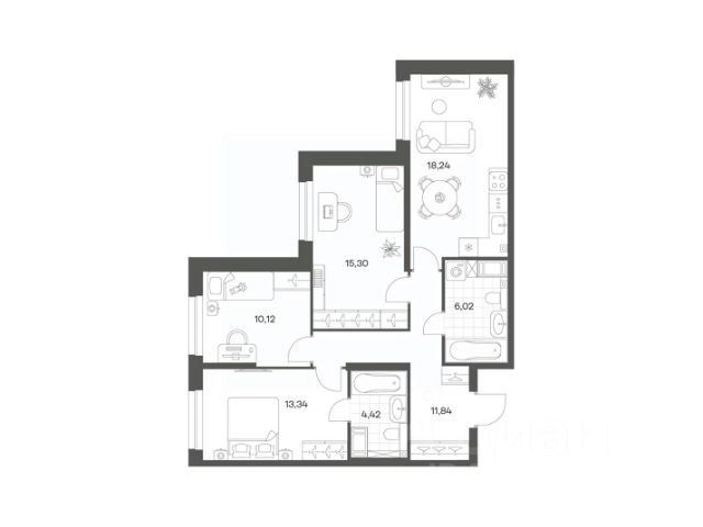 Продается квартира площадью 79.28 м² на 13 этаже 1 секции в Речной квартал от компании ГК "ТРЕСТ". Площадь кухни 18.24 м². Семейный жилой комплекс комфорт-класса "Речной квартал" от Группы компаний "ТРЕСТ" расположен в Невском районе Петербурга на пересечении Октябрьской набережной и Русановской улицы. Первая очередь квартала состоит из трёх корпусов, расположенных лучеобразно, чтобы максимально использовать естественное освещение и обеспечить видовые точки на локацию. Проект выделяется современными архитектурными решениями и дизайном. Концепция развития и благоустройства придомовой территории разделена на зоны отдыха, досуга и игровые площадки с учетом возраста и потребностей детей и взрослых. Квартал рассчитан на семейных покупателей, поэтому здесь нет студий: только одно-, двух- и трёхкомнатные квартиры. В проекте представлены квартиры с кухнями-гостиными, мастер-спальнями, гардеробными и кладовыми. "Речной квартал" - современный жилой комплекс с разнообразным благоустройством придомовой территории, просторными европланировками, закрытой охраняемой территорией и подземными паркингами. На территории комплекса уже функционирует детский сад на 110 мест. Также в квартале будет построена общеобразовательная школа на 475 мест с бассейном и стадионом. Открытие школы запланировано на 2029 год. Квартиры в ЖК "Речной квартал" можно приобрести с готовой отделкой от застройщика. Для покупателей квартир предусмотрено два варианта чистовой отделки "Ваниль" и "Шоколад". Чистовая отделка в квартирах ЖК "Речной квартал" предполагает монтаж натяжных потолков, укладку ламината, оклейку стен обоями под покраску, установку светильников и межкомнатных дверей. При отделке новой квартиры применяются качественные, натуральные и экологичные материалы, монтируется стильная импортная сантехника европейских брендов. В объявлении указана стоимость квартиры при 100% оплате. При других формах оплаты - базовую стоимость квартиры уточняейте на официальном сайте компании или у менеджера отдела продаж. Застройщик АО "Специализированный застройщик "Строительный трест".