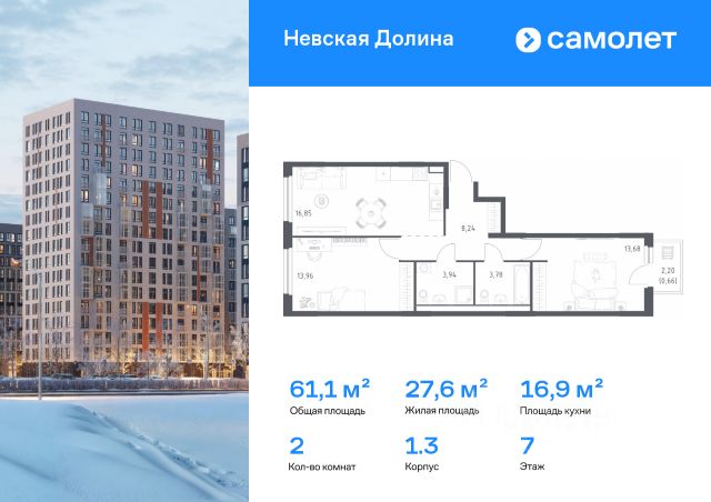 Строим кварталы для жизни с заботой о будущем. Предлагается 3-комнатная квартира комфорт-класса 71,75 кв.м в корпусе 1.3 на 14 этаже, в ЖК "Невская Долина" Квартира с чистовой отделкой. Доступность дополнительных опций уточняйте у застройщика. Приобрести квартиру возможно по специальным акциям от застройщика, с текущими условиями акций можно ознакомиться в блоке "Акций". Цена динамическая и может отличаться, уточняйте актуальность у застройщика. "Невская Долина" — зеленый холст для вашей жизни с уникальными палисадниками, садами и уютными уголками для отдыха. Всего в 5 минутах на машине — КАД, рядом — Большой Обуховский мост. До центра Петербурга — 35 минут на авто, до метро "Пролетарская" — 15 минут, до аэропорта Пулково — 30 минут. Комплекс находится на правом берегу Невы, рядом с Невским лесопарком, "МЕГА Парком" и парком развлечений. Скоро во дворе комплекса построят 4 детских сада и 2 школы. Рядом уже есть магазины "Дикси", "Магнит", пункты выдачи и аптеки. На первых этажах будут кафе и минимаркеты, откроется медицинский центр и физкультурно-оздоровительный комплекс. Архитектура домов сочетает в себе современность и функциональность — фасады украшены большими окнами, лоджиями, обычными и французскими балконами. В "Невской Долине" есть сады плодовых культур, игровые и спортивные зоны, 11 многоуровневых паркингов.