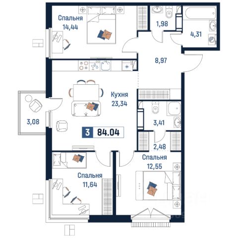 • ✓ В базе Циан 32 3-комнатных квартир на 14 этаже в Всеволожском районе Ленинградской области