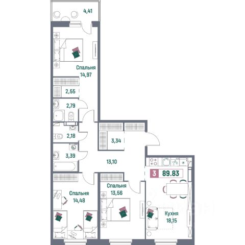 Продаётся 3-комн. квартира площадью 68,74 кв.м на 15 этаже 24 этажного дома (Корпус 5, Секция 2) проекта ПИК Заречный парк. Светлый просторный подъезд на уровне земли, функциональная планировка, большие окна, c отделкой. Жилой квартал "Заречный парк" расположен в районе Новое Девяткино Ленинградской области. В 7 минутах на автомобиле - станция метро "Девяткино", до КАД - 10 минут на машине. В 2026 году будет достроена шестиполосная трасса в обход Мурино, примыкающая к Пискарёвскому проспекту. Она станет дополнительным выездом на КАД для жителей "Заречного парка". Проект включает восемь домов высотой от 15 до 24 этажей, три многоуровневых паркинга, детский сад и школу. В зелёных дворах-парках будут оборудованы современные детские и спортивные площадки, обустроены места для отдыха. На первых этажах разместятся магазины, кафе и другие сервисы. Планировки продуманы так, чтобы каждый квадратный метр жилой площади можно было эффективно использовать. Все квартиры сдаются с готовой отделкой. Артикул 1021956 (Застройщик ООО "СПЕЦИАЛИЗИРОВАННЫЙ ЗАСТРОЙЩИК ИНВЕСТАЛЬЯНС") [cn_sbp_1822138]