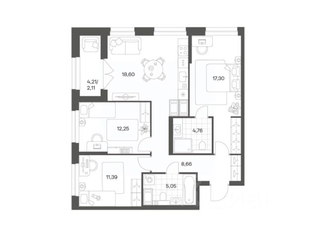 Продается квартира площадью 78.85 м² на 15 этаже 1 секции в Речной квартал от компании ГК "ТРЕСТ". Площадь кухни 18.24 м². Семейный жилой комплекс комфорт-класса "Речной квартал" от Группы компаний "ТРЕСТ" расположен в Невском районе Петербурга на пересечении Октябрьской набережной и Русановской улицы. Первая очередь квартала состоит из трёх корпусов, расположенных лучеобразно, чтобы максимально использовать естественное освещение и обеспечить видовые точки на локацию. Проект выделяется современными архитектурными решениями и дизайном. Концепция развития и благоустройства придомовой территории разделена на зоны отдыха, досуга и игровые площадки с учетом возраста и потребностей детей и взрослых. Квартал рассчитан на семейных покупателей, поэтому здесь нет студий: только одно-, двух- и трёхкомнатные квартиры. В проекте представлены квартиры с кухнями-гостиными, мастер-спальнями, гардеробными и кладовыми. "Речной квартал" - современный жилой комплекс с разнообразным благоустройством придомовой территории, просторными европланировками, закрытой охраняемой территорией и подземными паркингами. На территории комплекса уже функционирует детский сад на 110 мест. Также в квартале будет построена общеобразовательная школа на 475 мест с бассейном и стадионом. Открытие школы запланировано на 2029 год. Квартиры в ЖК "Речной квартал" можно приобрести с готовой отделкой от застройщика. Для покупателей квартир предусмотрено два варианта чистовой отделки "Ваниль" и "Шоколад". Чистовая отделка в квартирах ЖК "Речной квартал" предполагает монтаж натяжных потолков, укладку ламината, оклейку стен обоями под покраску, установку светильников и межкомнатных дверей. При отделке новой квартиры применяются качественные, натуральные и экологичные материалы, монтируется стильная импортная сантехника европейских брендов. Застройщик АО "Специализированный застройщик "Строительный трест".