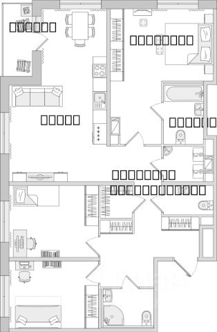 Комнаты: 15,3 + 11,8 + 12,3 + 5 (кабинет) кв.м.