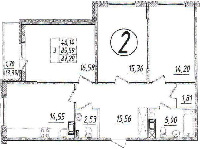 Продажа 3-комнатных квартир на 2 этаже в поселке городского типа Кузьмоловский Всеволожского района