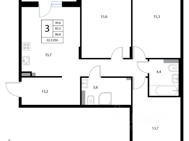 Продаётся 3-комнатная квартира в сданном доме (Прибалтийская, 4к4), срок сдачи: IV-кв. 2023, общей площадью 83.2 кв.м., на 2 этаже. Расположение, транспортная доступность