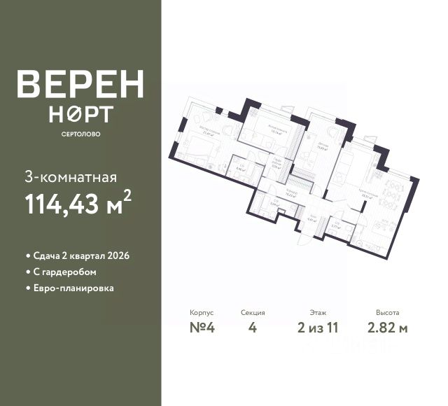 Просторная квартира для проживания большой семьи (еврочетырешка). Наличие трех отдельных комнат позволяет обустроить спальню, гостиную, детскую. Большая площадь кухни дает возможность разместить зону отдыха. Два полноценных санузла. Удобно для семьи с детьми. Система хранения во входной зоне. Напрямую продаётся 3 комнатная квартира 16 на 2 этаже (из 8) общей площадью 70,8 м2 в III очереди в жилом комплексе Сертолово Парк от застройщика ГК Алгоритм. Все квартиры в ЖК Сертолово Парк сдаются с чистовой отделкой в скандинавском стиле. Въезжайте и живите без дополнительных затрат на ремонт. Увеличенные оконные проемы и потолки высотой 2,74 м придают квартирам в ЖК Сертолово Парк ощущение простора, обеспечивая максимальное естественное освещение и свежий воздух. Энергосберегающий дом строится по финским технологиям: наружные стены изготовлены из заводских трехслойных железобетонных панелей толщиной 390 мм, фасады утеплены - толщина утеплителя 150 мм - и закрыты декоративным слоем -толщина 90 мм. Расположение ЖК: идеальное место для комфортной жизни в городе Сертолово. В 200 метрах находится детская и взрослая поликлиники. Вблизи детские сады и школы. ЖК Сертолово Парк окружен прекрасным лесным массивом, что создает уникальную атмосферу спокойствия и природной красоты прямо за порогом вашего дома. Для детей и взрослых на территории ЖК имеются детские и спортивные площадки. Кроме того, чтобы обеспечить безопасность и уединенность, территория жилого комплекса полностью закрыта. Крытый многоуровневый наземный паркинг с грузовым лифтом. Звоните! Ответим на все вопросы.