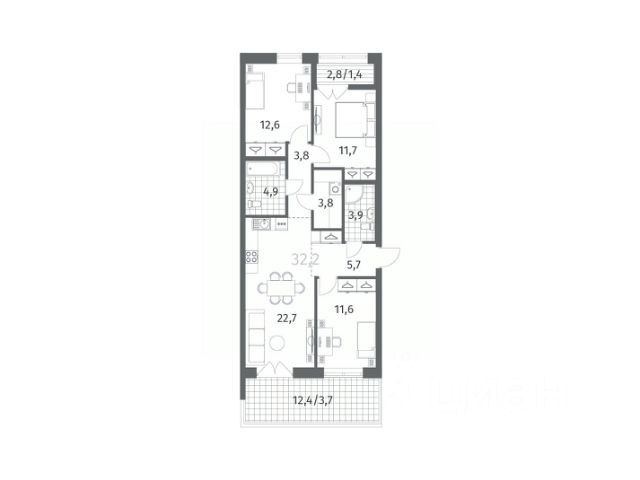 3-комнатная квартира площадью 71.68 в ЖК "А101 Лаголово" на 2 этаже. Квартира без отделки. Вид из окна во двор. В квартире 2 санузла. Высота потолков 2.84 м. Особенность планировки - гардеробная. ОТДЕЛКА Квартира передается без отделки. Благодаря тому, что в данном типе отделки стены не возводятся, вы сможете создать удобную планировку и самостоятельно организовать зонирование комнат. ОСОБЕННОСТИ ПЛАНИРОВКИ Из окон квартиры открывается живописный вид на зелёный пешеходный бульвар, который строится одновременно с домами. Гардеробная позволяет не только удобно разместить все вещи, но и идеально подходит для хранения крупных предметов. ДВОРЫ И ОКРУЖЕНИЕ Мы реализуем новый уровень в благоустройстве, а масштаб инфраструктуры поражает воображение: площадь дворов и пешеходного бульвара равна 64 теннисным кортам, а пешеходные дорожки протяжённостью 6,5 тысяч шагов позволяют неспешно прогуляться и насладиться окружающей красотой района. Для детей: яркие игровые комплексы, тактильная тропа и полоса препятствий Для отдыха: уютные зоны с навесами, столами и зарядками Для спорта: просторные площадки для игр, настольный теннис и открытые газоны для йоги и бадминтона Для экстрима: оборудованная трасса для велосипедов, самокатов, скейтбордов и роликов Для души: общественный сад и разнообразное озеленение Каждый двор оборудован системами видеонаблюдения и контроля доступа, закрыт от машин и посторонних. Не забываем о природе: вблизи расположены живописные Дудергофские озёра, величественные леса и поля. Зелёные зоны создают атмосферу уединения, помогая забыть о городской суете и наполниться энергией природы. ПАРАДНАЯ Для вашего комфорта предусмотрен удобный вход без ступеней, соответствующий принципам доступной среды для всех жителей, а также оборудовано отдельное помещение для хранения колясок и велосипедов в каждой парадной. ИНФРАСТРУКТУРА Время для себя и близких - бесценно. Именно поэтому "А101 Лаголово" - это не просто дома, а продуманная экосистема, где всё необходимое находится в 15 минутах от вашего дома. Здесь есть кафе, рестораны, коворкинги, детские площадки, спортивные секции, магазины и сервисы- всё для комфортной жизни в шаговой доступности. В проекте предусмотрены 3 современные школы. Строительство первой школы Акватория уже началось. Помимо современных классов, здесь появятся многофункциональные амфитеатры, трансформируемый спортзал, студия звукозаписи, медиатека и библиотека с большим количеством книг. Более 3 гектаров пришкольной территории отведено под спортивное ядро. В жилом районе также запланировано строительство 8 новых детских садов. ЗАСТРОЙЩИК ГК "А101" - один из крупнейших застройщиков России. Каждая восьмая квартира, проданная в Москве, находится в районе, построенном компанией, что подчеркивает её значимость и успех на рынке недвижимости.