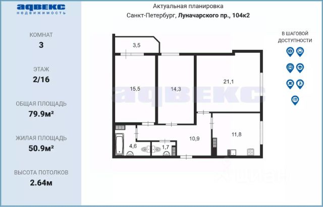 Отличное предложение! Предлагаем приобрести просторную трёхкомнатную квартиру, в 3х минутах ходьбы от ст. м. "Гражданский проспект". Дом-корабль, 1971 года постройки. Чистая парадная, установлены домофон, лифт. Доброжелательные соседи. Квартира в хорошем состоянии: -электропроводка вся новая, сделана с нуля, много розеток для удобства и ТВ розетки выведены в каждой комнате, на кухне и в ванной комнате; -сделана новая разводка труб; -установлены новые радиаторы отопления с регулировкой температуры; -3х-камерные стеклопакеты, карнизы сделаны на заказ; -в торцевой комнате и гостиной утеплены стены; -в комнатах - натяжные потолки с дизайнерскими люстрами, в коридоре, на кухне, в ванной комнате и туалете - потолки из панелей; -на полу - ламинат 33 и 34 класса; -в ванной комнате и туалете от потолка до пола выложена кафельная плитка; -интернет-провода проведены под потолком. В квартире остается кухонная мебель со встроенной техникой, а именно: встроенная варочная панель, встроенная духовка, стиральная машина, посудомоечная машина. Шкафы, мебель в комнатах, камин остаются по договоренности за отдельную плату. Для автомобилистов - во дворе дома парковка, на которой всегда есть свободные места. Вся инфраструктура в пешей доступности: остановки общественного транспорта, торговые комплексы, различные магазины, в т.ч. сетевые, банки, школы, детские сады, поликлиника, стоматология...... Прямая продажа. Один взрослый собственник. Без обременений. Возможна покупка с использованием маткапитала, ипотеки, субсидии. Оказываем помощь в одобрении ипотеки на выгодных условиях. Звоните!