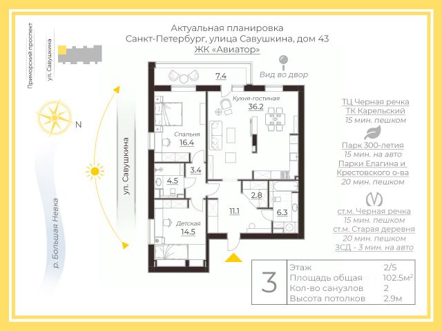 Квартира двусторонняя, окна детской выходят во двор, остальные на Ланское шоссе, солнечная сторона. В квартире установлен кондиционер, летом бесценная вещь в квартире.