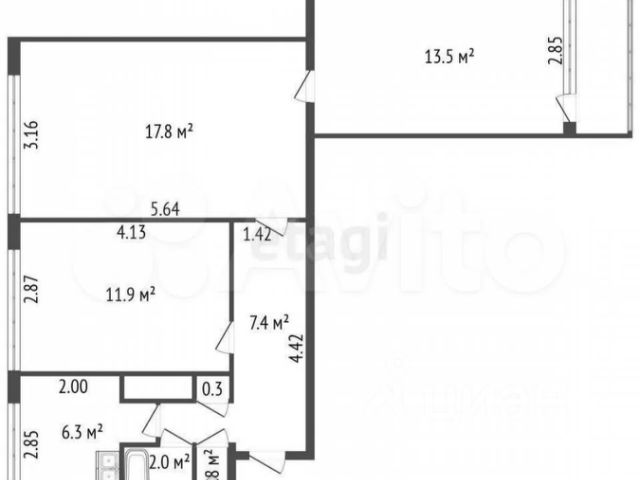 -Квартира имеет 1 лоджию из кухни 4,5 кв.м. +2 балкона по 3,5 кв.м. -общая площадь квартиры без учета лоджий и балконов =85,7 кв.м.