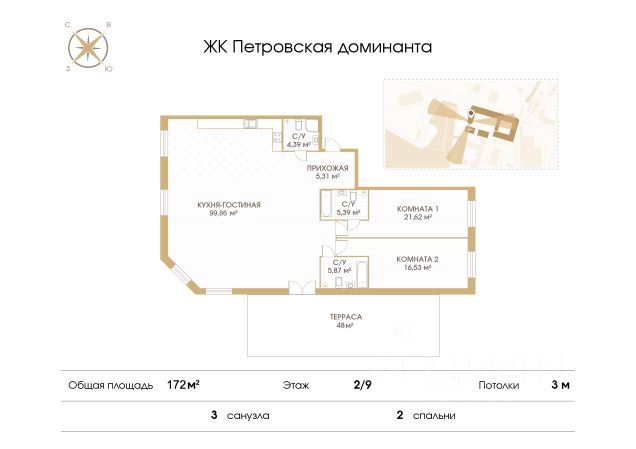 ЖК Нева Хаус - это масштабный проект элитного класса, который возведен застройщиком "ЛСР. Недвижимость - Северо-Запад" в одном из самых зеленых уголков Петроградского района. Он состоит из восьми монолитных разновысотных корпусов, в архитектурном облике которых гармонично сочетаются элементы постмодернизма, классического стиля и современных тенденций. Дизайн-проект ЖК был разработан известным петербуржским архитектором Евгением Герасимовым. Наружные стены домов оснащены износостойкими навесными фасадами и облицованы декоративным клинкерным кирпичом нескольких оттенков. Высота домов в проекте варьируется от 7 до 9 этажей. Комплекс оснащен современным оборудованием, которое обеспечивает жильцам максимальный уровень безопасности и комфорта. Покупателям предлагается разнообразный выбор планировок элитного жилья, начиная от просторных однокомнатных квартир и заканчивая пятикомнатными видовыми пентхаусами. Высота потолков в помещениях составляет 3-3.8 метра. Во всех форматах жилья предусмотрены большие кухни (от 12 кв. м), зонированные прихожие с отдельными гардеробными, увеличенные оконные проемы, ниши для установки кондиционеров и изолированные от бытовых помещений спальни. Разнообразие планировок включает варианты с просторными террасами, объединенными кухнями-гостиными, раздельными санузлами и дополнительными туалетами, эркерами и помещениями нестандартной формы. Площадь квартир - 46.87-300.79 квадратных метров. Базовая стоимость жилья не включает предчистовую или чистовую отделку помещений. В готовых квартирах установлены усиленные дизайнерские двери, оконные блоки с дерево-алюминиевыми рамами из натурального дуба и двойными стеклопакетами, современные отопительные радиаторы, оснащенные регуляторами температуры, и счетчики с функцией автоматического сбора и передачи данных. Закрытые дворы комплекса превращены в уютные прогулочные зоны для детей и взрослых. Застройщик выполнил озеленение пространства, согласно авторскому проекту ландшафтного дизайна, проложил велодорожки и тротуары, организовал закрытую набережную, установил многофункциональные спортивно-игровые городки, беседки, лавочки и стойки для велосипедов. Вся территория ЖК круглосуточно находится под охраной и видеонаблюдением. Для автотранспорта жильцов новостройки предусмотрены подземные паркинги с возможностью доступа из всех парадных на лифте. Их общая вместимость составляет 907 машиномест. Для посетителей организованы наземные стоянки по внешнему периметру территории. Жилой комплекс Нева Хаус находится в элитном районе города в окружении разнообразных объектов инфраструктуры. В пешей доступности работают гимназии, бутики, рестораны, спортивный стадион "Петровский" и филиалы ВУЗов, есть парк и яхт-клуб. Купить квартиру в жилом комплексе Нева Хаус можно в рассрочку или с привлечением ипотечного кредита, в том числе, и на льготных условиях с использованием военной ипотеки или маткапитала.
