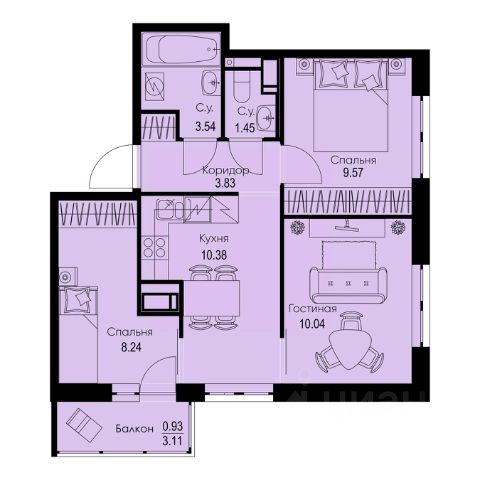 кухня-гостиная имеет два раздельных выхода на лоджию!