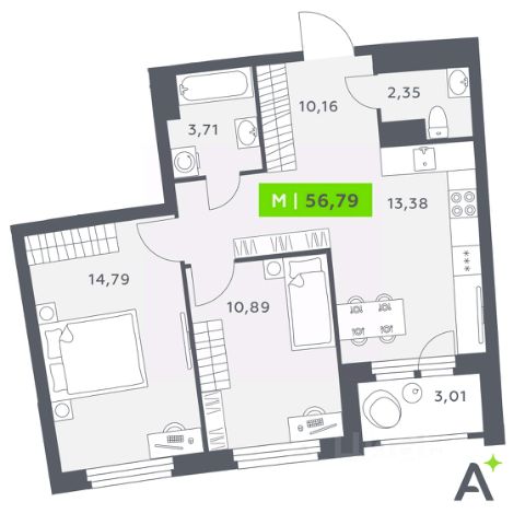 • ✅ Минимальная площадь: 54 м²