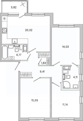Продается квартира 483, по адресу г. Санкт-Петербург, поселок Шушары, Чудовская улица, дом 14, корпус 1, строение 1, корпус ЖК Монография в Монография на 4 этаже, с площадью 70.9 м2.