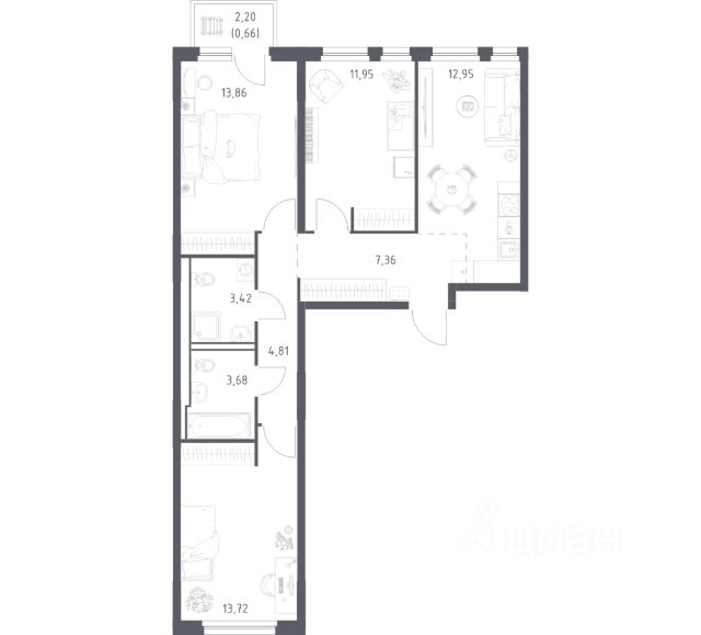 В продаже 3-комнатная квартира в корпусе 39 ЖК 'Живи! В Рыбацком'. Квартира располагается на 4 этаже, общая площадь 75.64 м2.