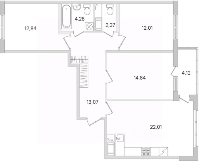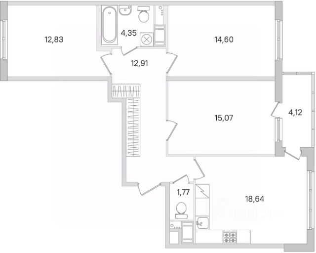 Трехкомнатная квартира от застройщика в ЖК "BAKUNINA 33" на 4 этаже. Квартира без отделки, после получения ключей можно делать ремонт. Общая площадь: 96.2 кв.м., жилая: 54.7 кв.м., площадь просторной кухни-столовой: 17.11 кв.м. Угловая квартира, очень светлая, естественная вентиляция при открытии окон. В квартире три совмещенных санузла. Высота потолков 3.0 м. Дом монолитный, трехподъездный, высотой 9 этажей. Квартира находится в 1-й секции в корпусе 1. На этаже 7 квартир. В подъезде 1 пассажирский и 1 грузовой лифт. Начало строительства - 2 квартал 2023 года. Строительство окончено, дом сдан во 2 квартале 2025 года. Оформление сделки по договору купли-продажи. В шаговой доступности от дома расположены станции метро (расстояние по прямой): "Площадь Александра Невского" (700 м), "Площадь Александра Невского 1" (700 м), "Площадь Александра Невского 2" (800 м), "Площадь Восстания" (1.4 км), "Новочеркасская" (1.5 км), также недалеко от этого корпуса расположены станции метро: "Владимирская", "Чернышевская", "Ладожская". Клубный дом BAKUNINA 33 - новый стандарт престижной жизни в Центральном районе. В 10 минутах от Невского проспекта и в двух минутах от Синопской набережной и Невы, в благоустроенной и знакомой среде. Локация клубного дома Bakunina 33 - идеальное место для погружения в культурную и светскую жизнь Санкт-Петербурга. В 10-15 минутах на машине почти все знаковые достопримечательности города: Эрмитаж, Русский музей, Александринский и Мариинский театры, БДТ, Таврический парк Казанский собор, Спас на крови и другие величественные дворцы, соборы, музеи, ради которых в город ежегодно съезжаются тысячи гостей. Каждая линия и каждый элемент дизайна дома является частью целостной концепции. Облик здания гармоничный, классически сдержанный с выверенными пропорциями и элегантными формами. Цветовые и архитектурные решения и эркеры придают облику дома легкость, доступную лишь респектабельной классике. Фасады привлекают внимание плавными ритмичными переходами. Вертикальная разбивка колоннами визуально устремляет здание ввысь. Плоскость фасадов декорирована разными элементами из гранита. Ограждение балконов, эркеры и колонны дополнены лаконичным геометрическим орнаментом в акцентном теплом сером цвете. Первые два этажа дома облицованы натуральным гранитом тёмного оттенка. Основной объём здания - выполнен штукатурным фасадом с окраской светлыми тонами из цветовой палитры " Традиционные цвета Санкт-Петербурга". Верхний этаж выполнен в стиле мансарды с высотой потолков в квартирах 3,5 метра. Этим достигается цель гармоничного и сомасштабного существования в одном фронте с существующими зданиями. За венчающим карнизом располагаются балконы девятого этажа. Ограждения балконов дополнены геометрическими узорами. Закрытый внутренний двор со сквером и детской площадкой. Острова зелени с водной чашей в центре создают ощущение гармонии и умиротворения. Современная уличная мебель и освещение формируют домашнюю атмосферу уюта и представляют д