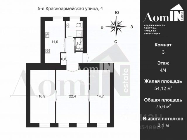 • ✓ В базе Циан 31 3-комнатных квартир на 4 этаже рядом с метро Пушкинская