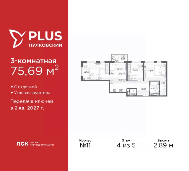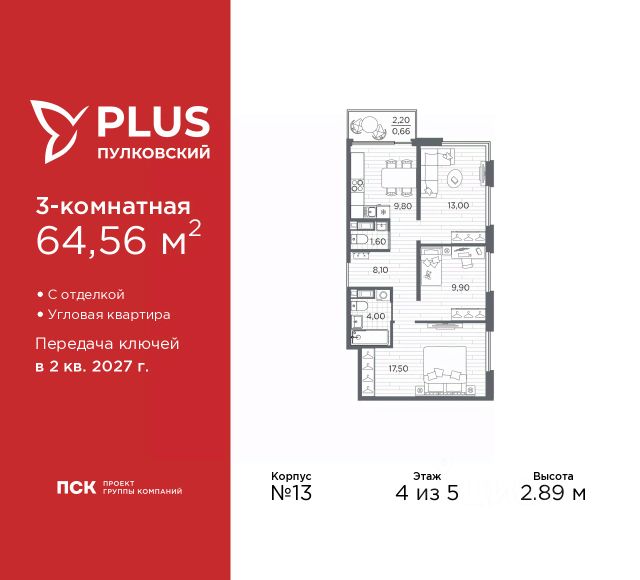 Продается 3-комн. квартира с отделкой в ЖК "PLUS Пулковский" на 4 этаже. Общая площадь: 64.56 кв.м., жилая: 40.4 кв.м., площадь просторной кухни-столовой: 9.8 кв.м. Квартира угловая, идеально подойдет любителям тишины и панорамных видов. В квартире один балкон, один совмещенный и один раздельный санузел. Высота потолков 2.89 м. Дом монолитный, трехподъездный, высотой 5 этажей. Квартира находится в 3-й секции в корпусе 13. На этаже 6 квартир. В подъезде 1 грузовой лифт. Начало строительства - 1 квартал 2026 года. Окончание строительства - 2 квартал 2027 года. Оформление сделки по договору долевого участия. Уютный пятиэтажный city квартал PLUS Пулковский расположен в престижном Московском районе на пересечении Пулковского и Волхонского шоссе в новом формирующемся микрорайоне. Рядом проходит одна из важнейших транспортных артерий города Пулковское шоссе, а в 10 минутах езды два въезда на КАД и въезд на ЗСД. Благодаря удобному и быстрому выезду на Пулковское шоссе, можно легко добраться до центра города за 35 мин. До станций метро "Московская" и "Купчино" - 15 мин. на машине, а до аэропорта Пулково - 17 мин. В составе квартала: 30 пятиэтажных домов, школа со спортивным стадионом, 2 детских сада с бассейнами, наземные и подземные паркинги, центральный зеленый бульвар с play hub и местами отдыха. Благоустройство квартала продумано до мельчайших деталей, в его основе - забота о качестве жизни каждого жителя. Дома возводятся по современной монолитной технологии строительства с вентилируемыми фасадами. Благодаря большим увеличенным окнам и отсутствию высокоэтажных домов, во всех квартирах максимальный объем естественного света. В составе квартала запланированы социально-значимые объекты: школа на 825 мест со спортивным стадионом и бассейнами, два детских сада с бассейнами на 220 мест каждый. Территория квартала зонирована таким образом, чтобы автомобильные и пешеходные потоки и не пересекались. Прогулочные и велосипедные дорожки отделены от автомобильных проездов зелеными насаждениями. Дворы закрыты для машин, что дает чувство дополнительной безопасности для жителей особенно, для самых маленьких. Вся территория квартала безбарьерная. Здесь нет пандусов, резких перепадов высот или неудобных ступеней. Вход в парадные с уровня земли. В каждом дворе есть своя оборудованная детская площадка. А в центре микрорайона расположится большая игровая площадка play hub с пространством для командных игр. PLUS Пулковский располагается в молодом микрорайоне, который сейчас находится в стадии активного развития. Он будет обладать собственной развитой инфраструктурой. В радиусе 15 минут езды на автомобиле располагаются многочисленные магазины, супермаркеты, спортивные, образовательные и медицинские учреждения, парки и достопримечательности. Для автомашин предусмотрены отдельно стоящий 5-ти этажный паркинг на 958 машино-мест, две подземные парковки на 367 машино-мест и наземные парковочные зоны по внешнему периметру микрорайона. #2MF33c
