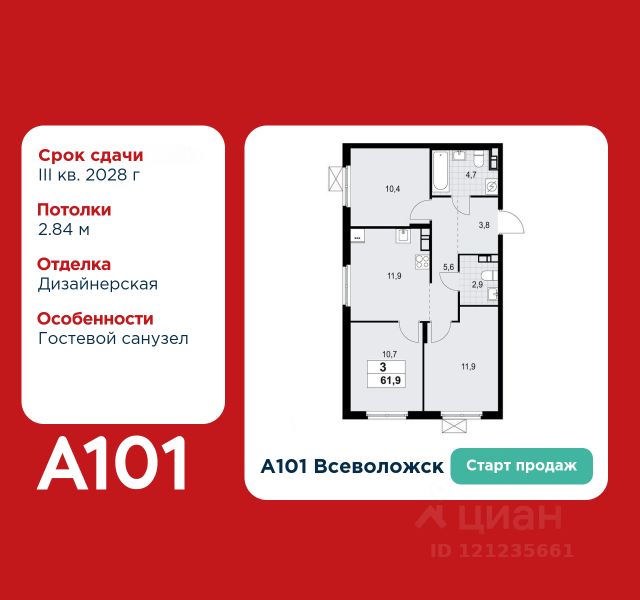 Продается квартира с 3 спальней в жилом комплексе бизнес-класса "Взлетная 16". Общая площадь квартиры составляет 97.89 м2 из которых 22,67 м2 отведено под просторную кухню-гостиную с двумя окнами. С мастер спальней площадью 16 м2 со своим сан.узлом и гардеробной. В квартире также предусмотрена прачечная. Новый ЖК "Взлетная 16", камерный малоэтажный дом на 68 квартир. Дом состоит из трех 5-этажных секций. Комплекс является уникальным за счет небольшого количества квартир с большим выбором продуманных планировочных решений. Важной особенностью жилого комплекса является наличие подземного паркинга на 42 парковочных места + гостевая парковка, закрытый и безопасный внутренний двор, колясочные и велосипедные в парадных, 30 кладовых помещения в подземном паркинге, как дополнительное место хранения сезонных вещей. На первом этаже комплекса расположены коммерческие помещения, где разместится инфраструктура для жителей дома фитнес-студия, коворкинг, салон красоты, пекарня, магазин и пункт выдачи интернет-заказов. Также на территории комплекса расположится детское дошкольное учреждение с площадкой для игр. Вся территория комплекса, включая паркинг и прилегающие зоны, оснащена камерами видеонаблюдения. Территория двора зонирована для максимального комфорта, предусмотрены современная детская площадка, пространства для рекреации и уединения. Ландшафтный дизайн в проекте ЖК "Взлетная 16" вдохновлен стилем французского парка, растения подобраны по принципу непрерывно цветущего сада, который не требователен в уходе и адаптирован под условия северной природы. ЖК "Взлетная 16" - идеальное пространство для спокойной семейной жизни в созвучии с динамикой городского комфорта. Строгость линий, многоплановость фасадов, внимание к деталям — вот что лежит в основе подхода к архитектурным решениям, объединяющим привычную классику и актуальность.