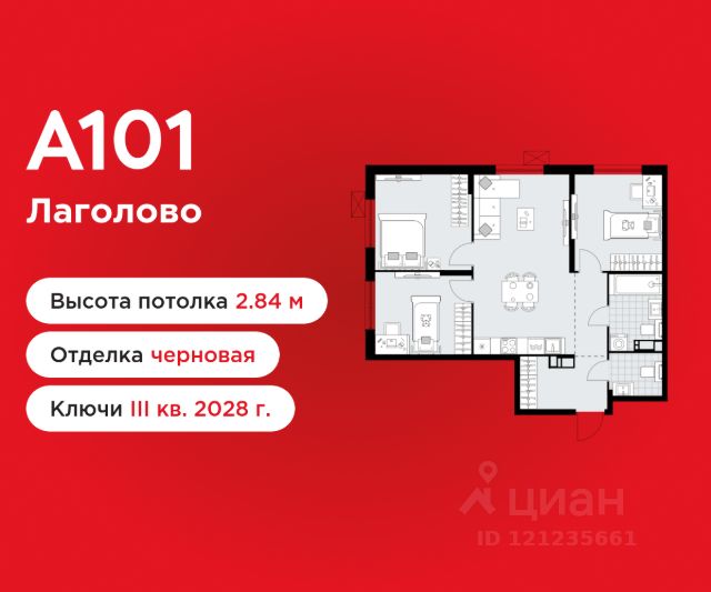 3-комнатная квартира площадью 63.88 в ЖК "А101 Лаголово" c балконом на 5 этаже. Квартира с отделкой. Вид из окна на улицу. В квартире 2 санузла. Высота потолков 2.84 м. ОТДЕЛКА Для квартир с чистовой отделкой предлагается три варианта дизайна: Классика, Карелия светлая и Карелия темная. Варианты всех дизайнерских решений представлены на фотографиях. Подробности можно уточнить у менеджера. На все отделочные работы от застройщика предоставляется гарантия. ПАРАДНАЯ. В каждой парадной предусмотрены места для хранения велосипедов и колясок, гостевой санузел и удобная зона ожидания для гостей. ДВОРЫ И ОКРУЖЕНИЕ. Просторные дворы безопасны для детей, так как свободны от машин, закрыты от посторонних и постоянно находятся под видеонаблюдением. Во дворах создается разнообразная среда для детей всех возрастов: детские площадки с батутами, тактильными дорожками и игровыми комплексами. Для активного отдыха - воркаут-площадки, столы для пинг-понга и газоны для занятий йогой. Во дворах есть и тихие уголки - зеленые гостиные с уличной мебелью, где можно поработать на свежем воздухе или отдохнуть в тишине. Из внутренних дворов комплекса можно выйти на пешеходный бульвар длиной около 900 метров. Здесь будет организовано полноценное общественное пространство с амфитеатром, уличным кафе, ручьем, фонтаном и множеством мест для отдыха и игр. Большую часть бульвара займут благоустроенные зеленые зоны и теневые сады из десятков видов деревьев и кустарников, многолетних цветов и трав, которые будут радовать глаз круглый год. "А101 Лаголово" - современный город у подножия знаменитых Дудерговских высот, в объятиях чистейших озер и зеленых живописных массивов, наполненный всем необходимым для счастливой жизни. ИНФРАСТРУКТУРА. Мы занимаемся комплексным освоением территории. Наш приоритет - доступность всех сервисов для счастливой жизни. 1. Лаголово-город 15-ти минутной доступности. Вся необходимая инфраструктура: магазины, салоны красоты, образовательные учреждения, медицинские центры находятся в 15-ти минутах пешей прогулки от любой точки жилого комплекса. Это позволяет не тратить время на долгие перемещения. 2. Представьте идеальный город, где ребенок может спокойно играть, а пожилой человек наслаждаться заслуженным отдыхом. Жилая среда нашего комплекса может комфортно использоваться как 8-летним ребенком, так и 80-летним пожилым человеком. Дома, улицы, общественные пространства, тротуары спроектированы с заботой о людях разных возрастов. 3. Мы активно развиваем авторскую образовательную экосистему "Лёрнити". Она включает строительство 8 современных детских садов (2000 мест) и 3 школ (2945 учащихся). Мы учим родителей гармонично общаться с детьми, помогаем малышам подготовиться к школе, а подросткам - выбрать будущую профессию и развить таланты. Не хватает средств на покупку кладового помещения? Оформите ипотеку на квартиру и добавьте к ней часть стоимости кладовой. ЗАСТРОЙЩИК ГК "А101" - крупный инвестиционно-строительный холдинг, занимает 6-е место по объему