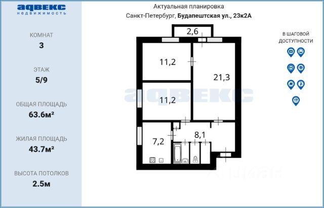 • ✓ В базе Циан 14 3-комнатных квартир на 5 этаже рядом с метро Бухарестская
