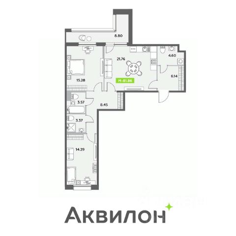Хорошая и очень удобная планировка! Общая площадь квартиры - 76,8 кв.м. Две спальни 20,4кв.м.+ 18.4кв.м. плюс столовая-гостинная около 15 кв.м. совмещенная с кухней 9 кв.м. (при необходимости столовую-гостинную можно быстро и недорого изолировать в отдельную комнату). Спальня 20.4 кв.м. включает в себя гардеробную комнату и из этой спальни есть отдельный вход в небольшое помещение для санузла, площадью 3,5 ув.м (с окном). Высота потолков - 3.07м.