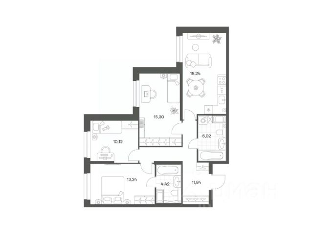 Продается квартира площадью 79.28 м² на 5 этаже 1 секции в Речной квартал от компании ГК "ТРЕСТ". Площадь кухни 18.24 м². Семейный жилой комплекс комфорт-класса "Речной квартал" от Группы компаний "ТРЕСТ" расположен в Невском районе Петербурга на пересечении Октябрьской набережной и Русановской улицы. Первая очередь квартала состоит из трёх корпусов, расположенных лучеобразно, чтобы максимально использовать естественное освещение и обеспечить видовые точки на локацию. Проект выделяется современными архитектурными решениями и дизайном. Концепция развития и благоустройства придомовой территории разделена на зоны отдыха, досуга и игровые площадки с учетом возраста и потребностей детей и взрослых. Квартал рассчитан на семейных покупателей, поэтому здесь нет студий: только одно-, двух- и трёхкомнатные квартиры. В проекте представлены квартиры с кухнями-гостиными, мастер-спальнями, гардеробными и кладовыми. "Речной квартал" - современный жилой комплекс с разнообразным благоустройством придомовой территории, просторными европланировками, закрытой охраняемой территорией и подземными паркингами. На территории комплекса уже функционирует детский сад на 110 мест. Также в квартале будет построена общеобразовательная школа на 475 мест с бассейном и стадионом. Открытие школы запланировано на 2029 год. Квартиры в ЖК "Речной квартал" можно приобрести с готовой отделкой от застройщика. Для покупателей квартир предусмотрено два варианта чистовой отделки "Ваниль" и "Шоколад". Чистовая отделка в квартирах ЖК "Речной квартал" предполагает монтаж натяжных потолков, укладку ламината, оклейку стен обоями под покраску, установку светильников и межкомнатных дверей. При отделке новой квартиры применяются качественные, натуральные и экологичные материалы, монтируется стильная импортная сантехника европейских брендов. В объявлении указана стоимость квартиры при 100% оплате. При других формах оплаты - базовую стоимость квартиры уточняейте на официальном сайте компании или у менеджера отдела продаж. Застройщик АО "Специализированный застройщик "Строительный трест".