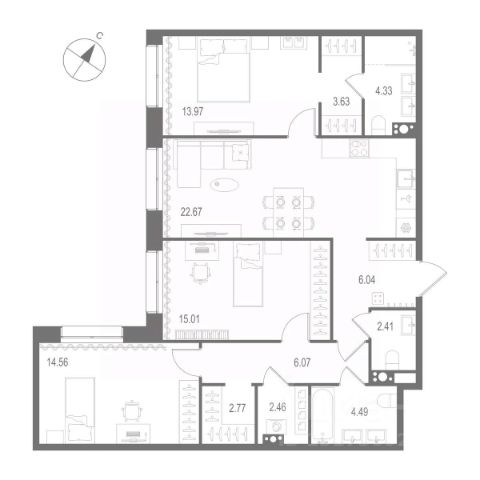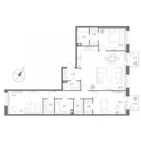 Продается квартира 67, по адресу г. Санкт-Петербург, Адмиралтейский район, набережная реки Пряжки участок 18 (севернее дома 7а, литера А), корпус Мариинка Deluxe в Мариинка Deluxe на 5 этаже, с площадью 122.1 м2.