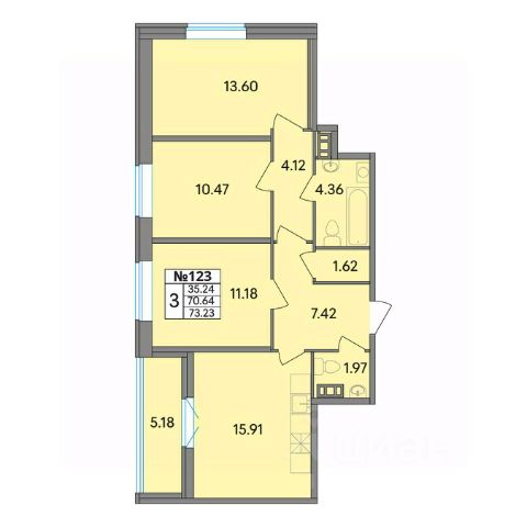 Продаётся 3-комнатная квартира в строящемся доме (Корпус 1), срок сдачи: IV-кв. 2026, общей площадью 71.52 кв.м., на 6 этаже. Жилой комплекс "Рождественский квартал" представляет собой проект квартальной застройки, расположенный во Всеволожском районе Ленобласти, в дер. Скотное. Это комплексно сформированная по современным стандартам застройка с центральными коммуникациями и собственной развитой инфраструктурой. Жилой комплекс состоит из 8-ми монолитно-кирпичных домов, возведенных по авторскому проекту. Высота каждого здания составляет 8 этажей. Несомненным плюсом ЖК является и то, что рядом с ним расположено множество достопримечательностей. Так, на машине можно быстро доехать до Вартемягского, Сарженского или Кавголовского озер, до Шуваловского или Ново-Кавголовского лесопарков. А любители животных смогут посещать конный клуб "Гермес", пони-ферму "Идальго" и знаменитый Токсовский зубровник. В ЖК "Рождественский квартал" компания предлагает более расширенный спектр услуг по отделки будущего жилья. Покупатели могут остановиться на чистовой или же выбрать предчистовой отделку. Также есть возможность заказать ремонт по индивидуальному проекту. Квартирография проекта включает студии, одно-, двух-, трех- и четырехкомнатные квартиры с разнообразными планировочными решениями. Инфраструктура района - От ЖК до станции метро "Девяткино" или "Парнас" можно добраться на общественном или личном транспорте за 15-25 минут. - Через деревню Скотное проходит автобус, следующий до Токсово, и маршрутка, идущая до станции метро "Проспект Просвещения". - Расстояние от ЖК до кольцевой автодороги - 8 км. - Есть организованный выезд на трассу Р-33. Преимущества - Экологически чистый район - Квартиры с отделкой - Собственная инфраструктура: школа, сад, магазины - На 1 этаже многофункциональные коммерческие помещения - Благоустроенная территория: площадки для взрослых и детей - Большой выбор планировок - Панорамное остекление