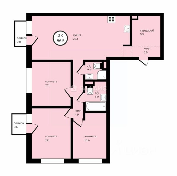 • ✓ В базе Циан 12 3-комнатных квартир на 6 этаже в городском поселении Заневское Всеволожского района