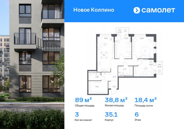 Строим кварталы для жизни с заботой о будущем. Предлагается 3-комнатная квартира комфорт-класса 88,95 кв.м в корпусе 35.1 на 6 этаже, в ЖК "Новое Колпино" Квартира с чистовой отделкой. Доступность дополнительных опций уточняйте у застройщика. Приобрести квартиру возможно по специальным акциям от застройщика, с текущими условиями акций можно ознакомиться в блоке "Акций". Цена динамическая и может отличаться, уточняйте актуальность у застройщика. Квартал "Новое Колпино" — современный квартал в тихом и зеленом районе Санкт-Петербурга. Здесь можно подолгу любоваться пышными кронами деревьев, подставляя лицо теплым лучам солнца. А еще в любой момент можно сесть в машину и уже через час оказаться в сердце Северной столицы. Будет легко планировать поездки: до центра Петербурга, или площади Восстания, — 25 минут на поезде. С территории квартала удобно выезжать на крупные магистрали: путь до Южного шоссе займет 15 минут на авто, а до Петрозаводского шоссе — всего 6 минут. В 20 минутах на авто находится метро "Рыбацкое", а в 7 минутах — ж/д станция Колпино. Проводите выходные на природе в Колпинском парке, который находится недалеко от квартала, на берегу реки Ижоры. Летом здесь можно вместе с детьми веселиться на аттракционах, кататься на лодке, играть в бадминтон или волейбол. А еще можно захватить орехов и покормить белок. Всего 7 минут на авто или автобусе — и вы в центре города Колпино. Взрослых впечатлит русская архитектура старинных церквей, а детям понравится забавный памятник героям мультфильма "Трое из Простоквашино". В "Новом Колпино" будут работать 4 детских сада, 3 из них уже готовы встречать малышей. Ребята постарше могут ходить на занятия в школу с собственным бассейном, в проекте уже работает новая современная школа с бассейном Корпуса высотой 11 этажей с французскими и панорамными балконами отделаны штукатуркой и облицовочным кирпичом. Вдохновение для палитры нам подарили оттенки рассветного неба: терракотовый, персиковый, песочный. Во дворе найдется интересное занятие для всех жителей квартала. Взрослые смогут устраивать тренировки на свежем воздухе в спортивных зонах, дети будут целый день веселиться на игровых площадках. А еще мы позаботились о вашей безопасности и закрыли дворы от машин. Возвращайтесь домой с чемоданом из путешествия или коляской из парка. На пути в подъезд вы не встретите ступенек. Оставить транспорт можно будет в специальном помещении на первом этаже. По желанию вы сможете получить ключи от квартиры с готовой отделкой. Мы положим ламинат, поклеим обои, установим мебель и сантехнику. Доступен вариант с готовой кухней — бежевые тона отделки станут фоном для интерьера мечты. Чтобы сразу отпраздновать новоселье, закажите у нас декор и мебельные сеты. А если хочется воплотить собственные идеи в интерьере, присмотритесь к опции — без отделки.