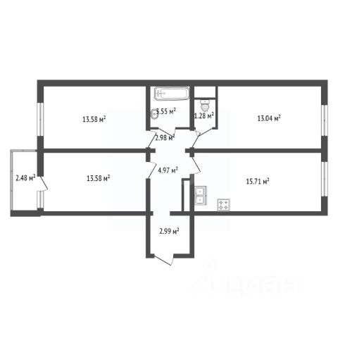 Общая площадь: 89,7 кв.м