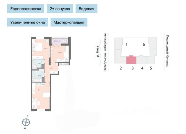 Выгодное предложение на паркинг. Продаётся 3-комнатная квартира в ЖК "Цивилизация на Неве" на 6 этаже. Общая площадь составляет 89.90 кв. м. Квартира с white box отделкой. Жилой комплекс "Цивилизация на Неве" располагается по адресу Санкт-Петербург, Невский. "Цивилизация на Неве" - видовые дома бизнес-класса, расположенные вдоль набережной Невы, всего в 7 км от исторического центра. Жилой комплекс идеально выражает особый дух, свойственный знаменитым просторным кварталам постройки сталинской эпохи в Москве и на Московском проспекте в Петербурге. Расположение: • 15 мин на авто до Невского проспекта; • 15 мин на авто до Московского вокзала; • 5 мин на авто до станции метро "Улица Дыбенко"; • 14 мин (7 км) до КАД. Уникальный дизайн входных зон, закрытая территория, видеонаблюдение и охрана, подземный паркинг с лифтом и другие особенности проекта отвечают заявленному классу. В каждом дворе предусмотрено озеленение по индивидуальному ландшафтному проекту с благородными растениями и кустарниками. Преимущества: • Закрытая территория с видеонаблюдением; • Подземный паркинг с лифтом; • Детская площадка на приватной безопасной территории; • Несколько детских садов и школ; • Инфраструктура шаговой доступности на первых этажах корпусов. Успейте приобрести квартиру на выгодных условиях! Чтобы узнать подробности, обращайтесь за консультацией по телефону.