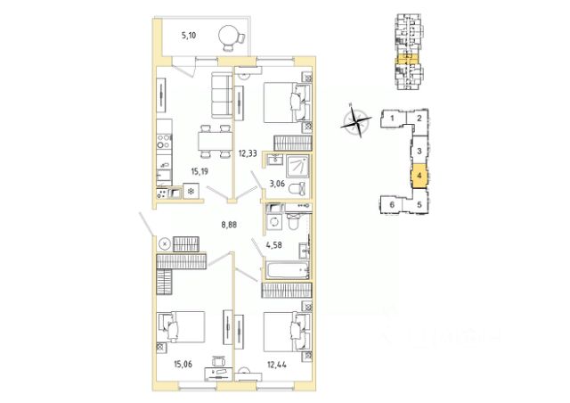 Продаётся просторная евротрёхкомнатная квартира с большой кухней-гостиной в современном жилом комплексе IQ-Гатчина. Яркий архитектурный проект шведского бюро Йоханнеса Товатта удачно вписан в спокойный и зелёный исторический пригород Санкт-Петербурга. Район полностью развит — рядом находится всё, что нужно для комфортной жизни: новая школа от застройщика Ленстройтрест, детский сад, парк "Орлова Роща", спорткомплекс "Волна" с бассейном, тренажёрный зал "Атлетик", поликлиника, перинатальный центр, стоматология, банк, почта, а также торговый центр CUBUS.