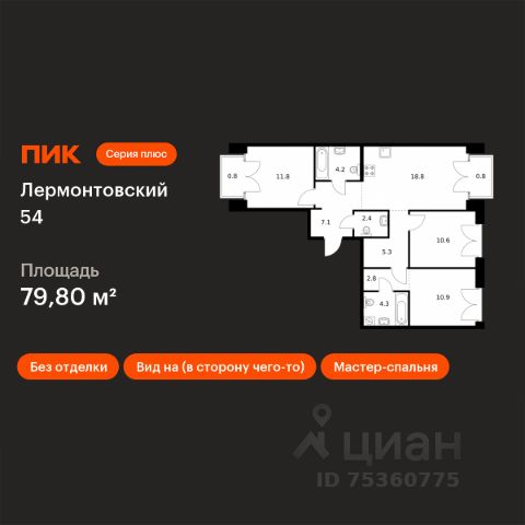 Продаётся 3-комн. квартира площадью 79,8 кв.м на 7 этаже 9 этажного дома (Корпус 2.1, Секция 4) проекта ПИК Лермонтовский 54. Светлый просторный подъезд на уровне земли, функциональная планировка, большие окна, без отделки. "Лермонтовский 54" находится в центре Санкт-Петербурга на набережной Обводного канала, в 5 минутах пешком от метро "Балтийская". Здесь будут квартиры с окнами в пол, высокими потолками и террасами. Жилой квартал находится в центре Санкт-Петербурга, в Адмиралтейском районе, на набережной Обводного канала. В 5 минутах пешком - станция метро "Балтийская". До Невского проспекта на автомобиле ехать 8 минут, до Московского проспекта - всего 2 минуты. Необычные фасады "Лермонтовского 54" напоминают о промышленной архитектуре, которая была популярна в Санкт-Петербурге в конце XIX и начале XX века. Материал отделки - прочный кирпич, который прослужит до 100 лет. А благодаря системе чиллер-фанкойл на фасадах не будет блоков кондиционеров - всё охлаждение происходит внутри здания. В "Лермонтовском" возводятся дома высотой от 7 до 9 этажей с небольшим количеством квартир: на этаже может быть всего две квартиры. Во дворах будут закрытые парки с детскими площадками и местами для отдыха, а на подземном этаже - паркинг с удобной навигацией. Между домами протянется пешеходный бульвар для прогулок и отдыха, для велосипедистов предусмотрены специальные дорожки и парковки. В 2024 году в "Лермонтовском 54" открылся лицей на 1000 мест. Он разместился в здании 1824 года - раньше здесь было Николаевское кавалерийское училище. Во всех квартирах будут трёхметровые потолки и окна в пол. На первых этажах откроются магазины, кафе и другие сервисы. Со стороны набережной в домах, которые признаны объектами культурного наследия, мы разместим общественные пространства. Недалеко от "Лермонтовского 54" находится Юсуповский дворец, парк Екатерингоф, на машине можно доехать до острова Новая Голландия и Мариинского театра. Рядом работают школы, детские сады, торговые центры и гипермаркеты. Артикул 921173 (Застройщик ООО "СПЕЦИАЛИЗИРОВАННЫЙ ЗАСТРОЙЩИК "АЛЬМАНДИН") [cn_sbp_1595119]