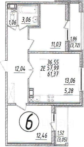 • ✅ Минимальная площадь: 57 м²