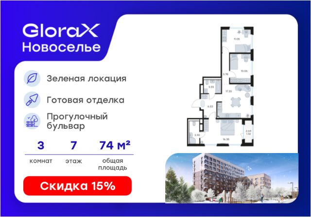 Продаётся 3-комнатная квартира 043, общей площадью 68.11 кв.м., на 7 этаже. Дом комфорт-класса, 12 этажей, в окружении леса и малоэтажной застройки. Проект с умным домом. РАСПОЛОЖЕНИЕ И БЛАГОУСТРОЙСТВО ЖК "Тишин" расположен в поселке Новоселье в окружении природы — рядом находятся Гореловский лес и Шунгеровский заказник, что делает его идеальным для любителей чистого воздуха и покоя. Особенность комплекса — это благоустроенные дворы с зонами для отдыха, спорта и игр, а также центральный бульвар протяженностью 1 км с велодорожками, спортивными площадками и зонами для прогулок. На территории комплекса предусмотрены детские сады, школа, коммерческие помещения и паркинги, что создает комфортную среду для жизни. Три уровня умного дома 1. Уровень квартира • Управление освещением, климатом и водоснабжением через мобильное приложение или голосового помощника. • Система защиты от протечек воды с автоматическим перекрытием стояков. • Пожарная сигнализация с уведомлениями в режиме реального времени. 2. Уровень дома • Онлайн-доступ к видеонаблюдению, включая просмотр архива. • Контроль доступа на этажах через СКУД (систему контроля и управления доступом). 3. Уровень ЖК • Единое мобильное приложение Wise City для общения с управляющей компанией, оплаты счетов и сервисных заявок. ГК "Едино" — один из лидеров рынка недвижимости Северо-Запада с 24-летним опытом. Компания известна высокими стандартами качества и соблюдением сроков сдачи объектов. В цифрах: Более 50 реализованных проектов. 60 000+ счастливых жителей. Мы организуем для вас бесплатный трансфер до офиса продаж и обратно!