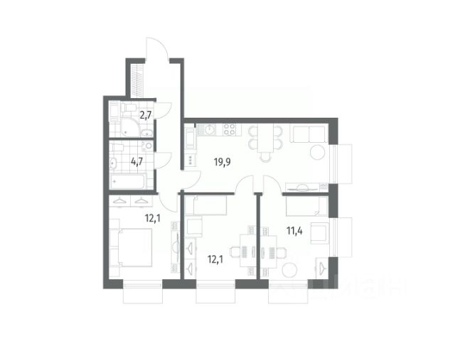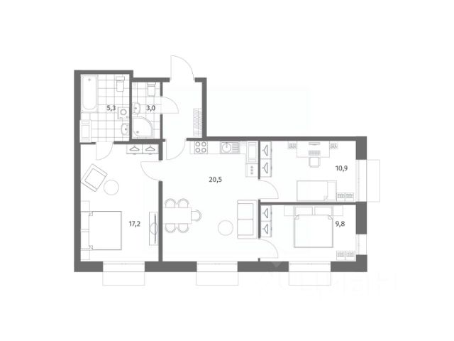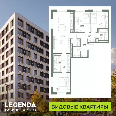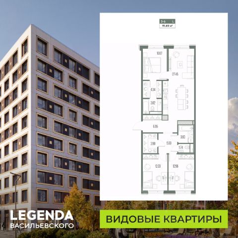 3-комн. квартира от застройщика с предчистовой отделкой в ЖК "LEGENDA Васильевского" на 7 этаже. Общая площадь: 83.54 кв.м., жилая: 32.14 кв.м., площадь просторной кухни-столовой: 26.79 кв.м. Угловая квартира, окна oбecпeчивaют paвнoмepнoe ocвeщeниe в тeчeниe дня. В квартире два раздельных санузла. Высота потолков 2.72 м. "LEGENDA Васильевского" жилой квартал в минутной доступности от Финского залива, главного креативного хаба Санкт-Петербурга Севкабель Порта и других точек притяжения. Современные инженерные и технические решения, повышающие качество жизни TechnoBox включают в себя: стационарный и удаленный контроль дома, систему вентиляции Air Design - здоровое дыхание без лишнего шума, мультисервисную сеть, объединяющую коммуникационные системы, удаленное управление электроприборами, контроль отопления в каждом помещении, поддерживающий оптимальный температурный баланс во время "холодного" периода", датчики протечки, датчик открытия входной двери. Мультисервисная сеть (МСС) объединяет ключевые слаботочные системы дома, задавая им единый высокий стандарт работы, обеспечивая надёжность их функционирования и управления. Квартира готова к декорированию. Застройщиком сделана шумоизоляция; стены подготовлены для отделки; проведена электрика с учетом рекомендаций по расстановке мебели и бытовой техники; выровнен пол. В каждой квартире установлена взломостойкая входная дверь, окна со специальным термоизолированным алюминиевым профилем. Двор жилого комплекса "LEGENDA Васильевского" закрыт. Проект состоит из шести разноформатных корпусов с ритмичными фасадами в духе пост-конструктивизма. Геометрия жилого комплекса состоит из четко простроенных осей, чередующих открытые пространства и объемы корпусов, каждый из которых обладает своим визуальным кодом индивидуальным рисунком фасада и цветовой палитрой. Корпуса образуют периметр с общественными пространствами: площадью с кафе, магазинами и пешеходным променадом с детскими игровыми хабами, местами для спокойного отдыха и workout-зоной. На территории комплекса предусмотрены теплый подземный паркинг и два наземных 4-х этажных паркинга.