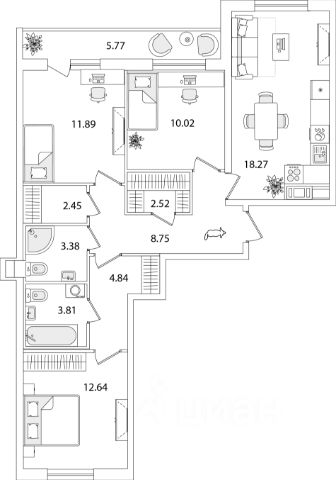 Вы открываете дверь и попадаете в просторную прихожую, где не нужно тесниться втроём. Здесь легко разместится шкаф для всей семьи, а утром сборы на работу превращаются в ритуал, а не в борьбу за место.