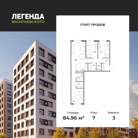 3-комн. квартира в ЖК "Галерная гавань" на 7 этаже. Квартира без отделки, полностью готова к чистовой отделке и дальнейшему ремонту. Общая площадь: 85 кв.м., жилая: 44.82 кв.м., площадь просторной кухни-столовой: 25.81 кв.м. Квартира без проходных комнат, окна выходят нa три cтopoны дома. В квартире два совмещенных санузла. Высота потолков 3.02 м.