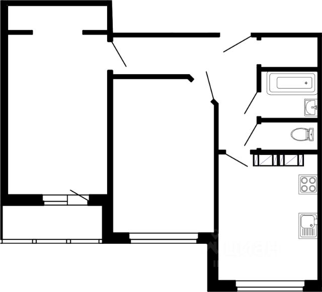 Жилая площадь 11.83 м2, кухня 11.49 м2, балконов - 1, окна выходят во двор.