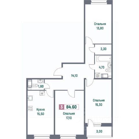 Продаётся e4 комнатная квартира (евро) в жилищном комплексе "Энфилд" (корпус Дом 18 секция 6). Общая площадь 82,09 кв. м, площадь комнат 14,95 кв.м, 13,87 кв.м, 11,91 кв.м. 2 санузла. Квартира расположена на 8 этаже 12 этажного дома. Срок сдачи корпуса IV квартал 2027 года. Современный жилой квартал "Энфилд" от компании Arsenal объединяет в себе преимущества хорошей экологии и удобного расположения рядом с городом. Квартал расположен на территории Мурино-Бугры, в 10 минутах от метро Девяткино. В состав ЖК "Энфилд" войдет 17 домов высотой до 12 этажей, 14 из них уже построено и сдано. На территории работает два детских сада и школа с углубленным изучением иностранных языков. Квартал славится красивой территорией, пешеходным бульваром с фонтанами, детскими и спортивными площадками, инфраструктурой для отдыха. В 5 минутах ходьбы расположен гипермаркет "Лента", из квартала предусмотрен удобный выезд на КАД.