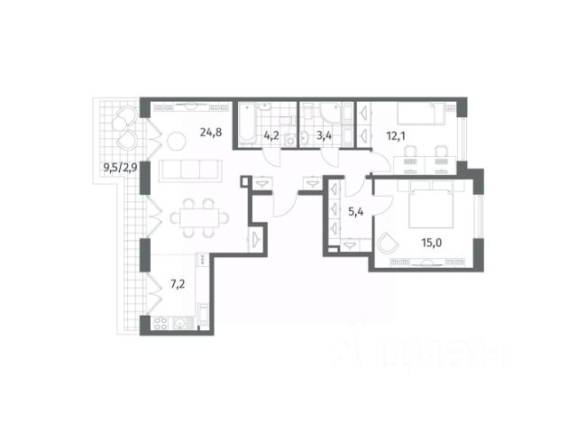 • ✓ В базе Циан 33 3-комнатных квартир на 8 этаже рядом с метро Горный институт