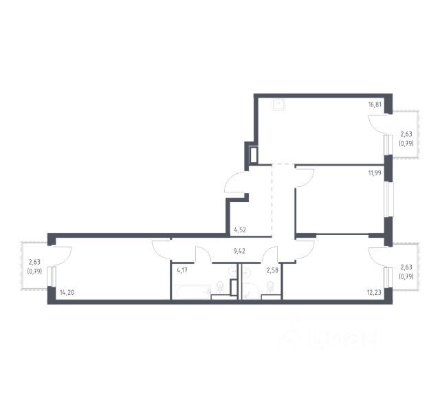 Продаётся 3-комн. квартира площадью 79,49 кв.м на 8 этаже 14 этажного дома (Корпус 4, Секция 3) проекта ПИК Заречный парк. Светлый просторный подъезд на уровне земли, функциональная планировка, большие окна, без отделки. Жилой квартал "Заречный парк" расположен в районе Новое Девяткино Ленинградской области. В 7 минутах на автомобиле - станция метро "Девяткино", до КАД - 10 минут на машине. В 2026 году будет достроена шестиполосная трасса в обход Мурино, примыкающая к Пискарёвскому проспекту. Она станет дополнительным выездом на КАД для жителей "Заречного парка". Проект включает восемь домов высотой от 15 до 24 этажей, три многоуровневых паркинга, детский сад и школу. В зелёных дворах-парках будут оборудованы современные детские и спортивные площадки, обустроены места для отдыха. На первых этажах разместятся магазины, кафе и другие сервисы. Планировки продуманы так, чтобы каждый квадратный метр жилой площади можно было эффективно использовать. Все квартиры сдаются с готовой отделкой. Артикул 1060351 (Застройщик ООО "СПЕЦИАЛИЗИРОВАННЫЙ ЗАСТРОЙЩИК ИНВЕСТАЛЬЯНС") [cn_sbp_1848864]