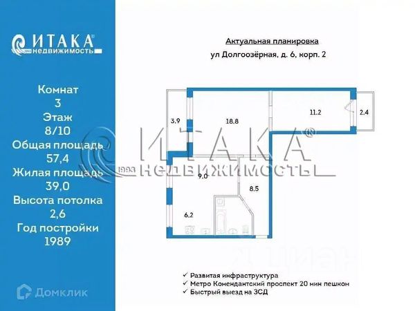 • ✓ В базе Циан 44 3-комнатных квартир на 8 этаже рядом с метро Комендантский проспект
