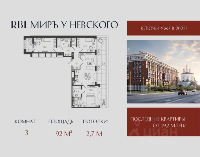 Продается 3-комн. квартира от застройщика в ЖК "BAKUNINA 33" на 8 этаже. Квартира без отделки, новый собственник может сделать ремонт по своему проекту. Общая площадь: 129.4 кв.м., жилая: 60.78 кв.м., площадь просторной кухни-столовой: 15.85 кв.м. Квартира - распашонка, без проходных комнат, окна выходят на paзные стороны дома. В квартире два балкона, два совмещенных санузла. Терраса представляет собой роскошную зону отдыха для проведение вечеров в кругу семьи и друзей или организация вечеринок. Высота потолков 3.0 м. Дом монолитный, трехподъездный, высотой 9 этажей. Квартира находится в 1-й секции в корпусе 1. На этаже 7 квартир. В подъезде 1 пассажирский и 1 грузовой лифт. Начало строительства - 2 квартал 2023 года. Строительство окончено, дом сдан во 2 квартале 2025 года. Оформление сделки по договору купли-продажи. В шаговой доступности от дома расположены станции метро (расстояние по прямой): "Площадь Александра Невского" (700 м), "Площадь Александра Невского 1" (700 м), "Площадь Александра Невского 2" (800 м), "Площадь Восстания" (1.4 км), "Новочеркасская" (1.5 км), также недалеко от этого корпуса расположены станции метро: "Владимирская", "Чернышевская", "Ладожская". Клубный дом BAKUNINA 33 - новый стандарт престижной жизни в Центральном районе. В 10 минутах от Невского проспекта и в двух минутах от Синопской набережной и Невы, в благоустроенной и знакомой среде. Локация клубного дома Bakunina 33 - идеальное место для погружения в культурную и светскую жизнь Санкт-Петербурга. В 10-15 минутах на машине почти все знаковые достопримечательности города: Эрмитаж, Русский музей, Александринский и Мариинский театры, БДТ, Таврический парк Казанский собор, Спас на крови и другие величественные дворцы, соборы, музеи, ради которых в город ежегодно съезжаются тысячи гостей. Каждая линия и каждый элемент дизайна дома является частью целостной концепции. Облик здания гармоничный, классически сдержанный с выверенными пропорциями и элегантными формами. Цветовые и архитектурные решения и эркеры придают облику дома легкость, доступную лишь респектабельной классике. Фасады привлекают внимание плавными ритмичными переходами. Вертикальная разбивка колоннами визуально устремляет здание ввысь. Плоскость фасадов декорирована разными элементами из гранита. Ограждение балконов, эркеры и колонны дополнены лаконичным геометрическим орнаментом в акцентном теплом сером цвете. Первые два этажа дома облицованы натуральным гранитом тёмного оттенка. Основной объём здания - выполнен штукатурным фасадом с окраской светлыми тонами из цветовой палитры " Традиционные цвета Санкт-Петербурга". Верхний этаж выполнен в стиле мансарды с высотой потолков в квартирах 3,5 метра. Этим достигается цель гармоничного и сомасштабного существования в одном фронте с существующими зданиями. За венчающим карнизом располагаются балконы девятого этажа. Ограждения балконов дополнены геометрическими узорами. Закрытый внутренний двор со сквером и детской площадкой. Острова зе
