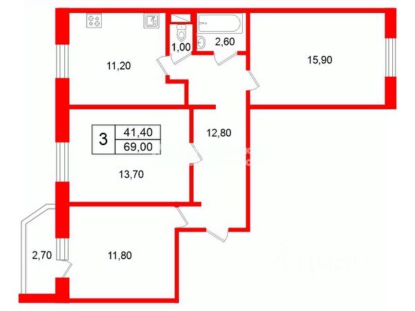 - 71,4 квадратных метра. Можно реализовать любые дизайнерские решения